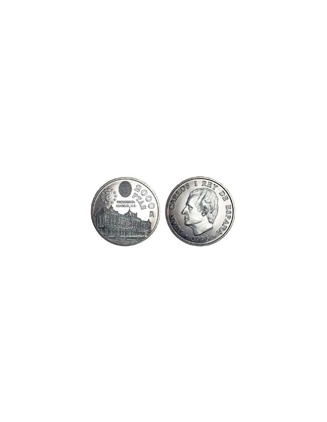 Moneda conmemorativa 2000 ptas. 1995. Plata. 1ª Presidencia española de la U.E. Palacio Real. Peso: 18.2gr. Diámetro: 33mm